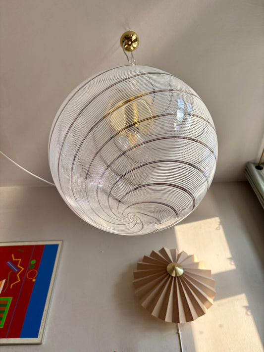 Vintage Murano pendel med hvid og sort swirl i transparent glas 40 cm