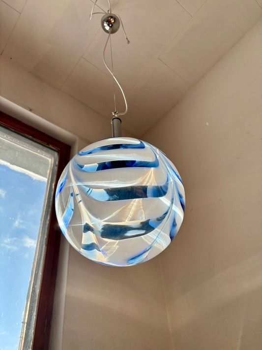 Vintage Murano pendel blåt og hvidt mønster 30 cm