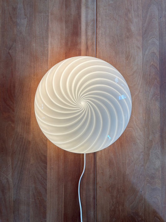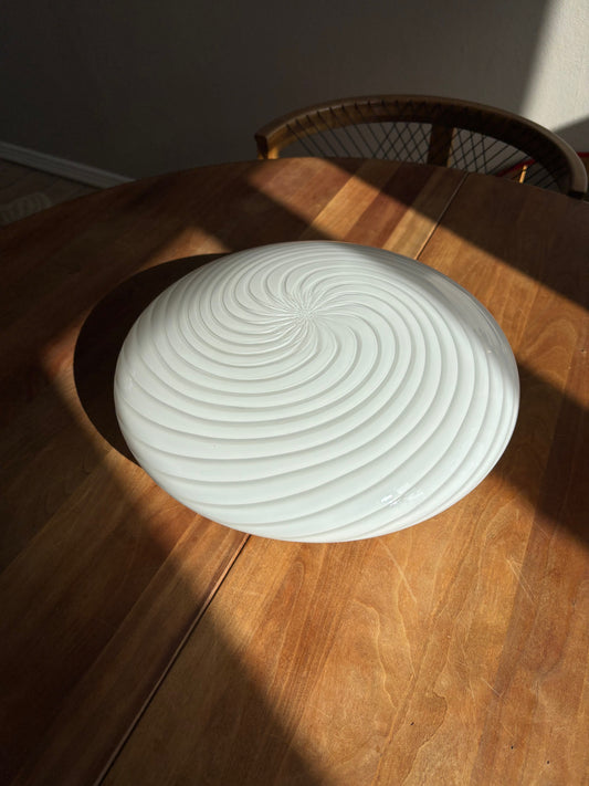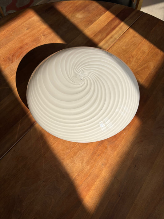 Vintage Murano plafond hvidt swirl 36 cm med messing ophæng