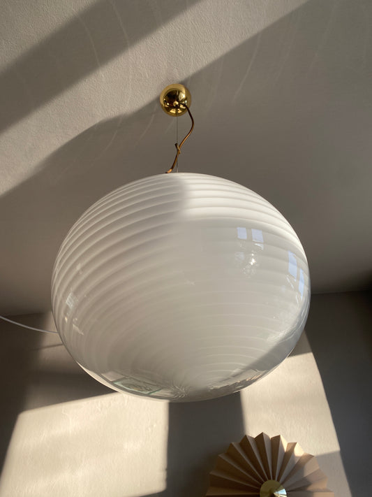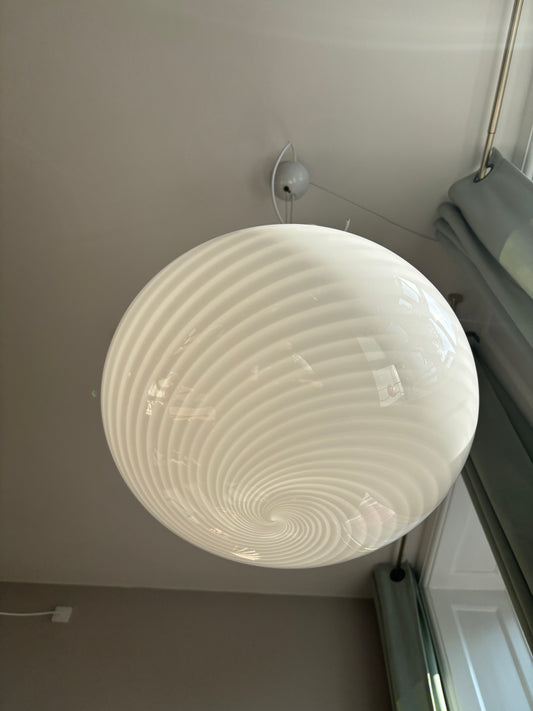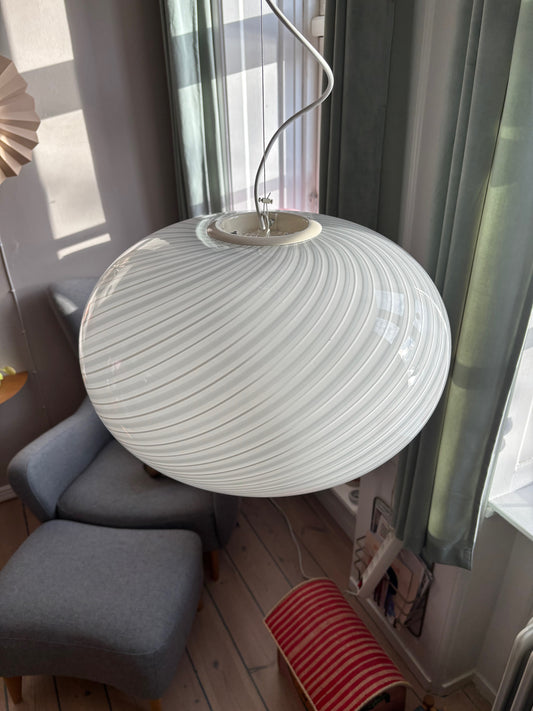 Vintage oval Effetre Murano loftslampe hvid swirl 45 cm