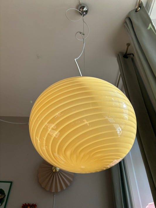 Vintage oval Murano loftlampe i gult swirl 40 cm
