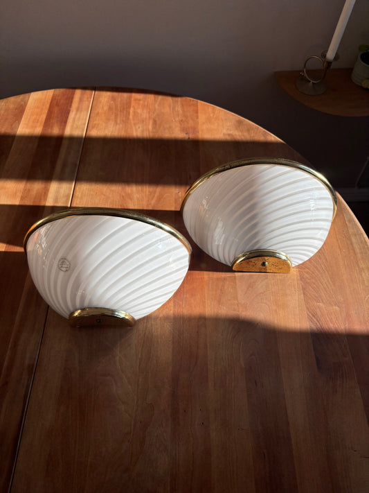 Vintage Murano plafond transperant glas med hvidt swirl 37 cm