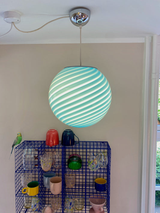 Lyseblå Murano loftslampe i swirl rigadin 30 cm