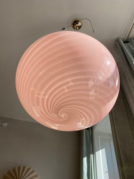 Lyserød Murano loftslampe i swirl 30