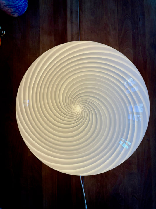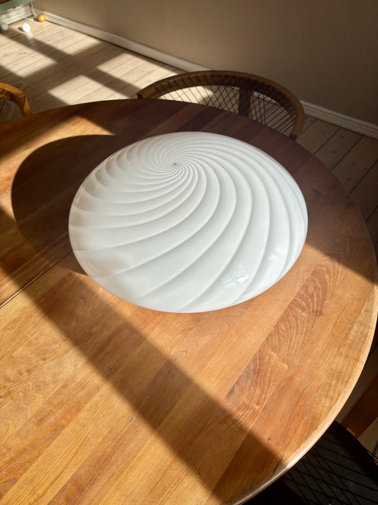 Kæmpe vintage Murano plafond hvidt swirl 46 cm