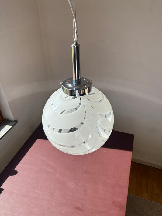 Vintage Murano pendel oval med hvidt swirl 40 cm