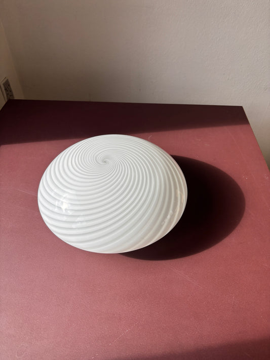 Vintage Murano plafond med hvidt transperant swirl 30 cm