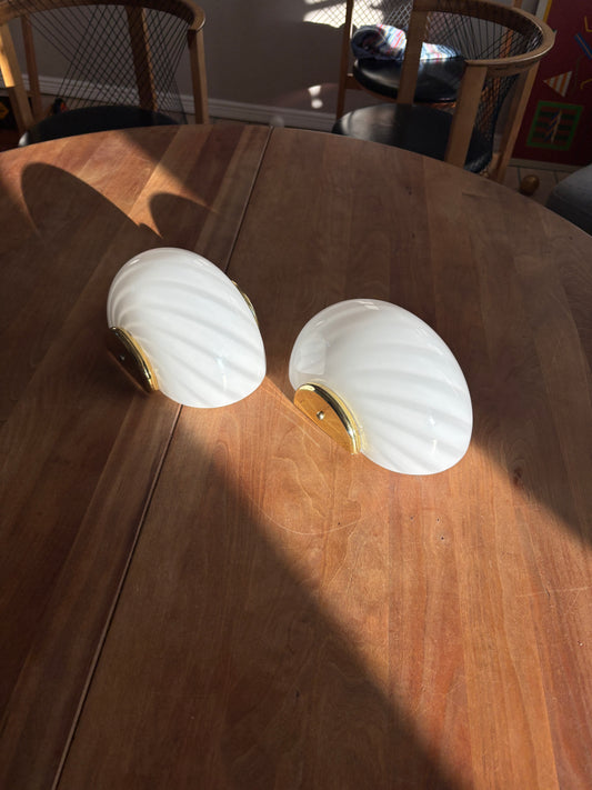 Vintage Murano muslinge væglampe i hvid med hvid perlemor