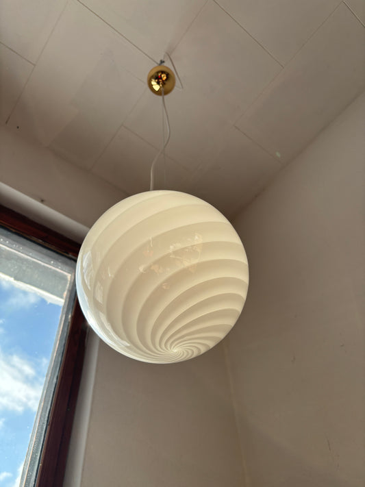 Vintage Murano plafond med hvidt transperant swirl 30 cm