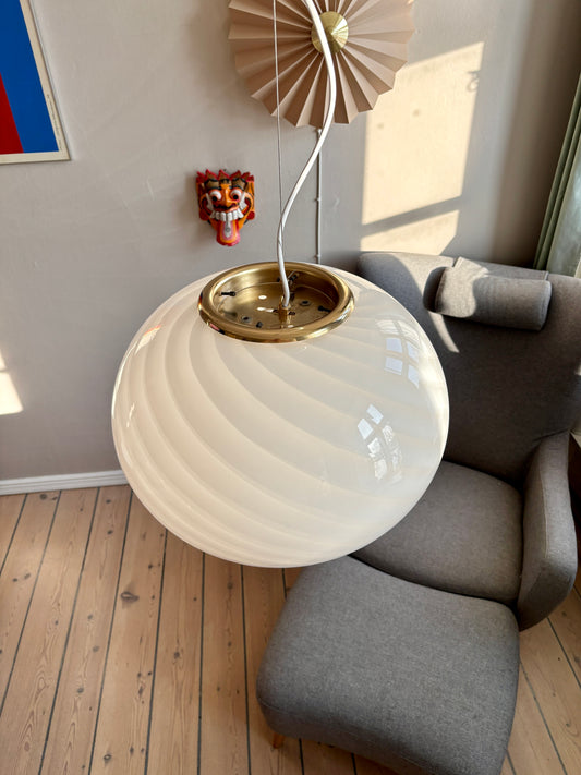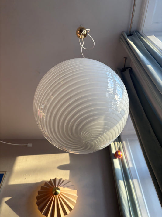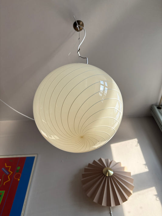 Vintage Murano "Effetre" pendel rund med hvidt swirl 35 cm