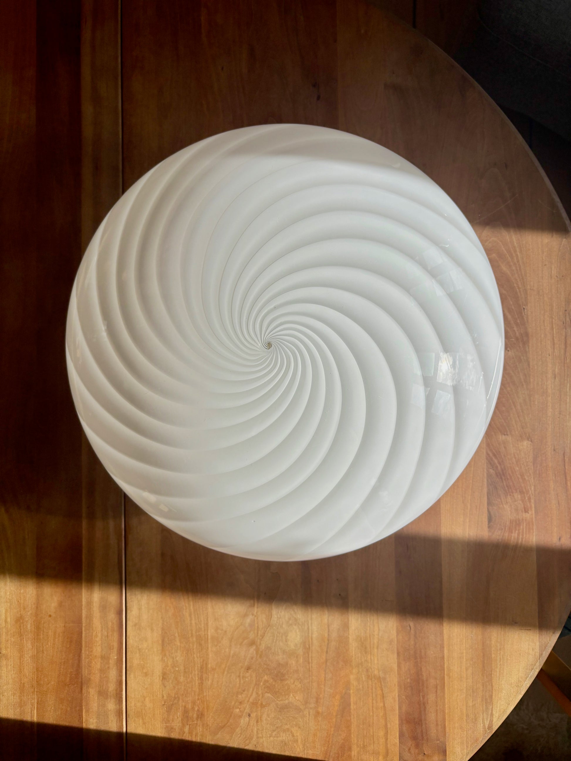 Kæmpe vintage Murano plafond hvidt swirl 46 cm