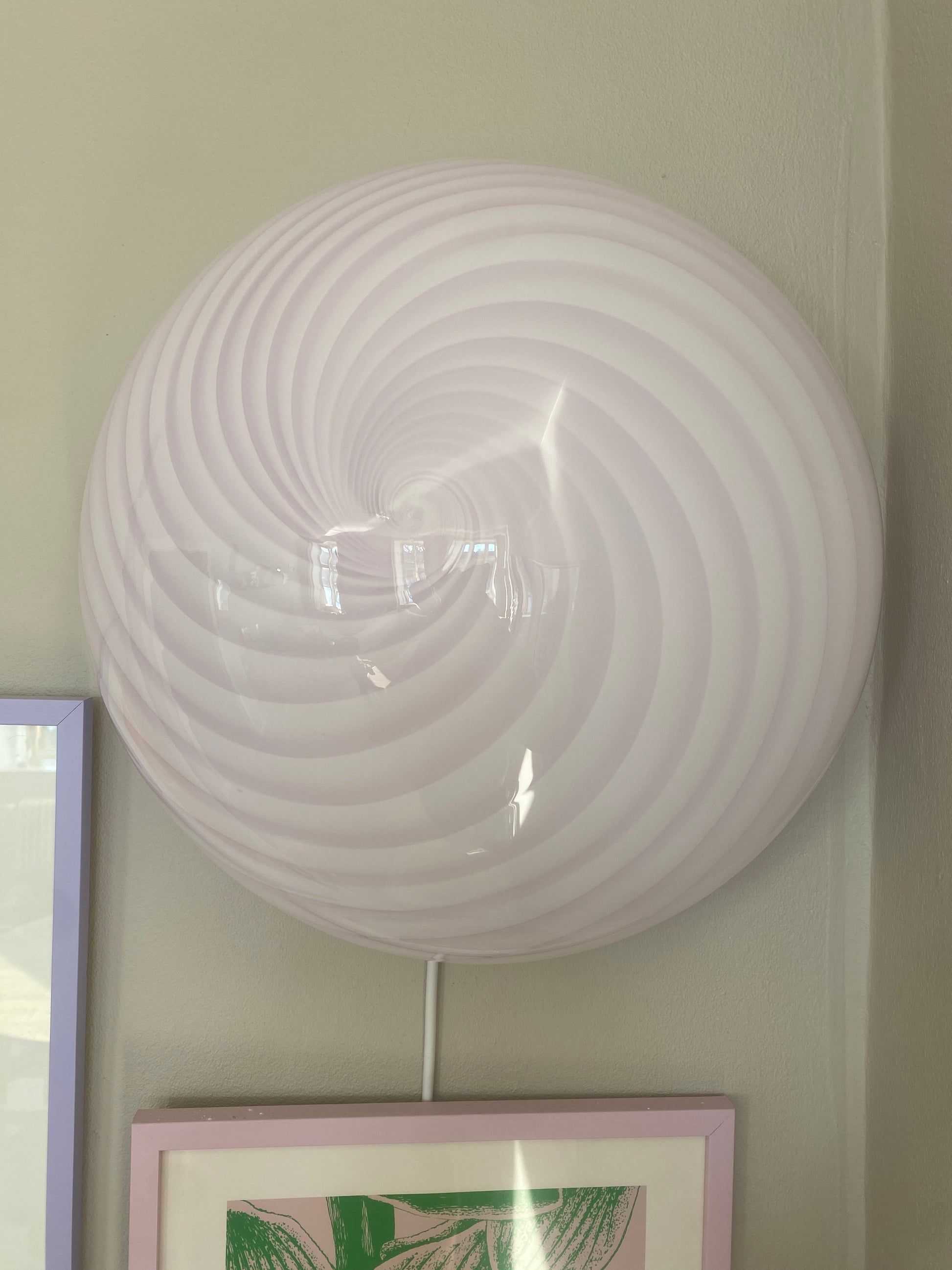 Lampen er er lavet i en rigtig fin lyserød farve og det finest swirl