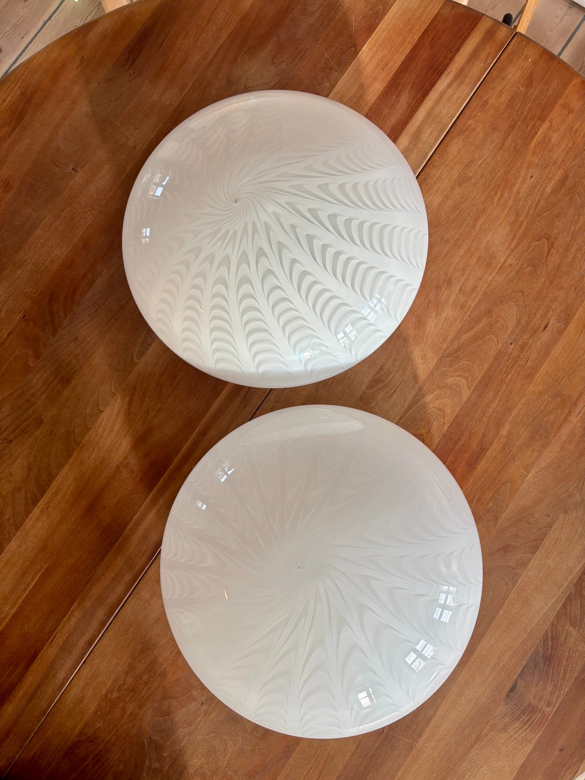Vintage Murano plafond lampe i hvid med det smukke peacock mønster, kommer med et hvidt ophæng.