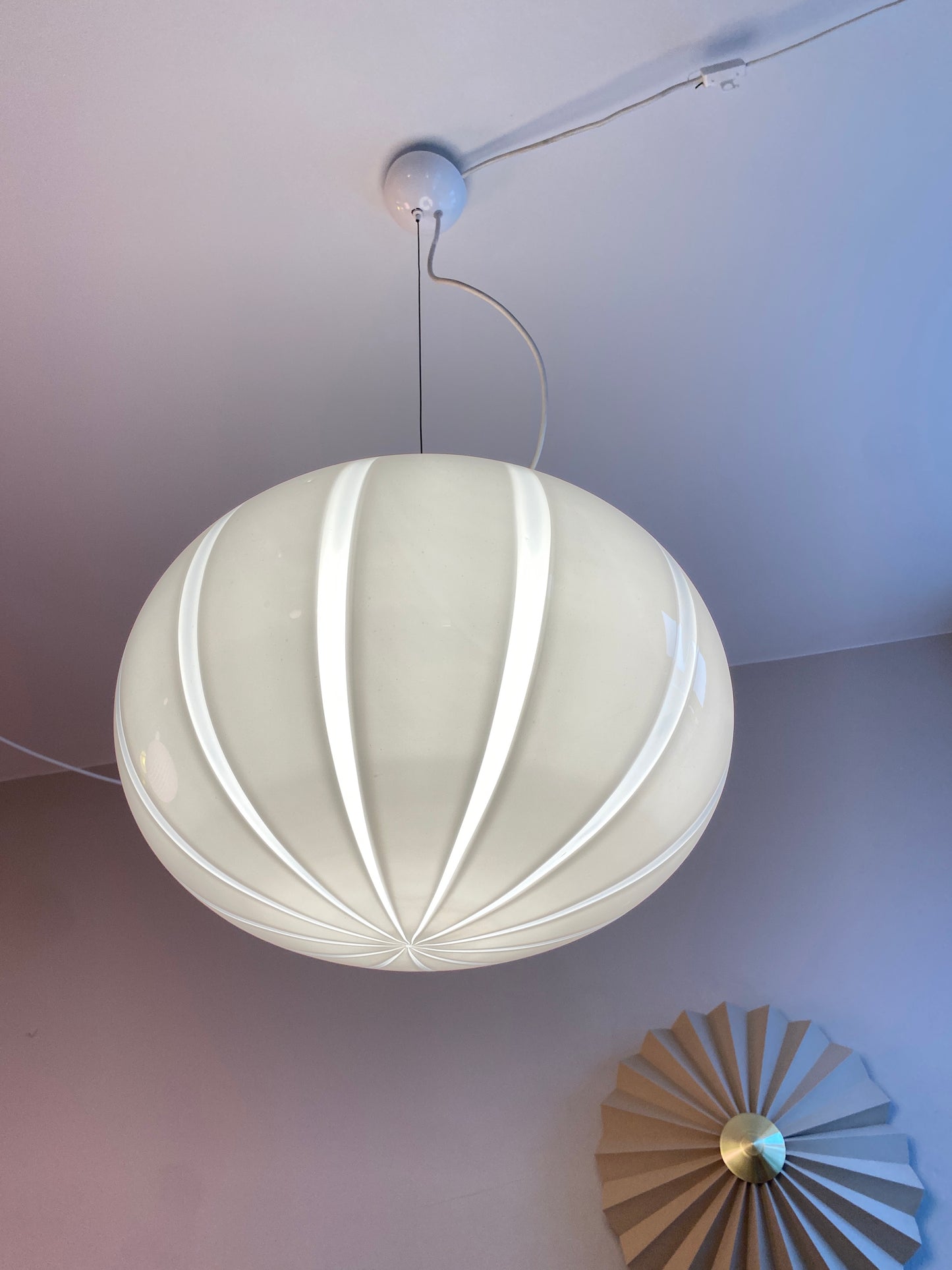 Stor og super smuk vintage pendel i hvid murano glas og kommer med hvidt ophæng.
