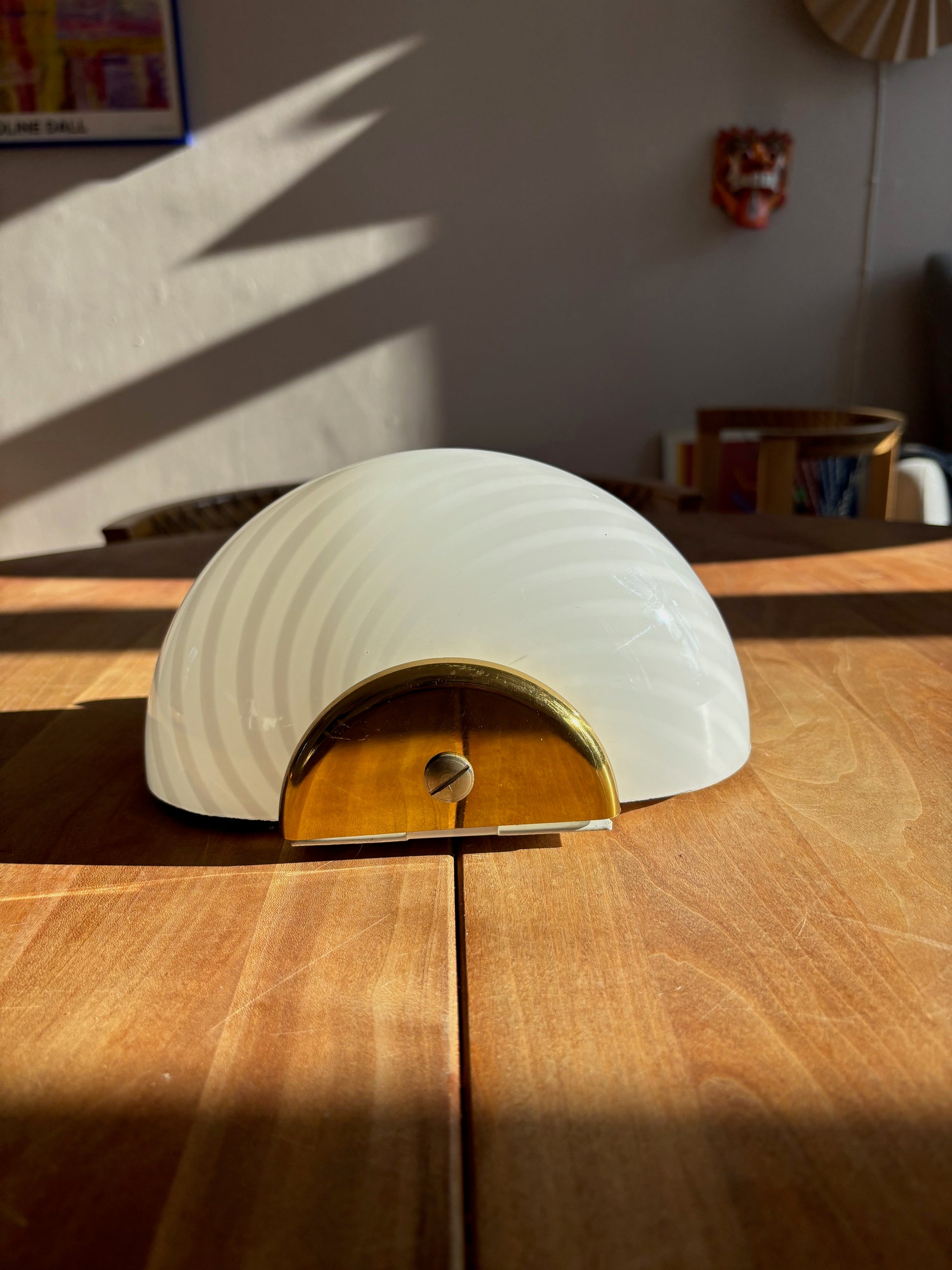 Vintage Murano væglampe i en smuk hvid farve med swirl mønster lampen kommer med messingophæng. Lamperne er i perfekt vintage stand.