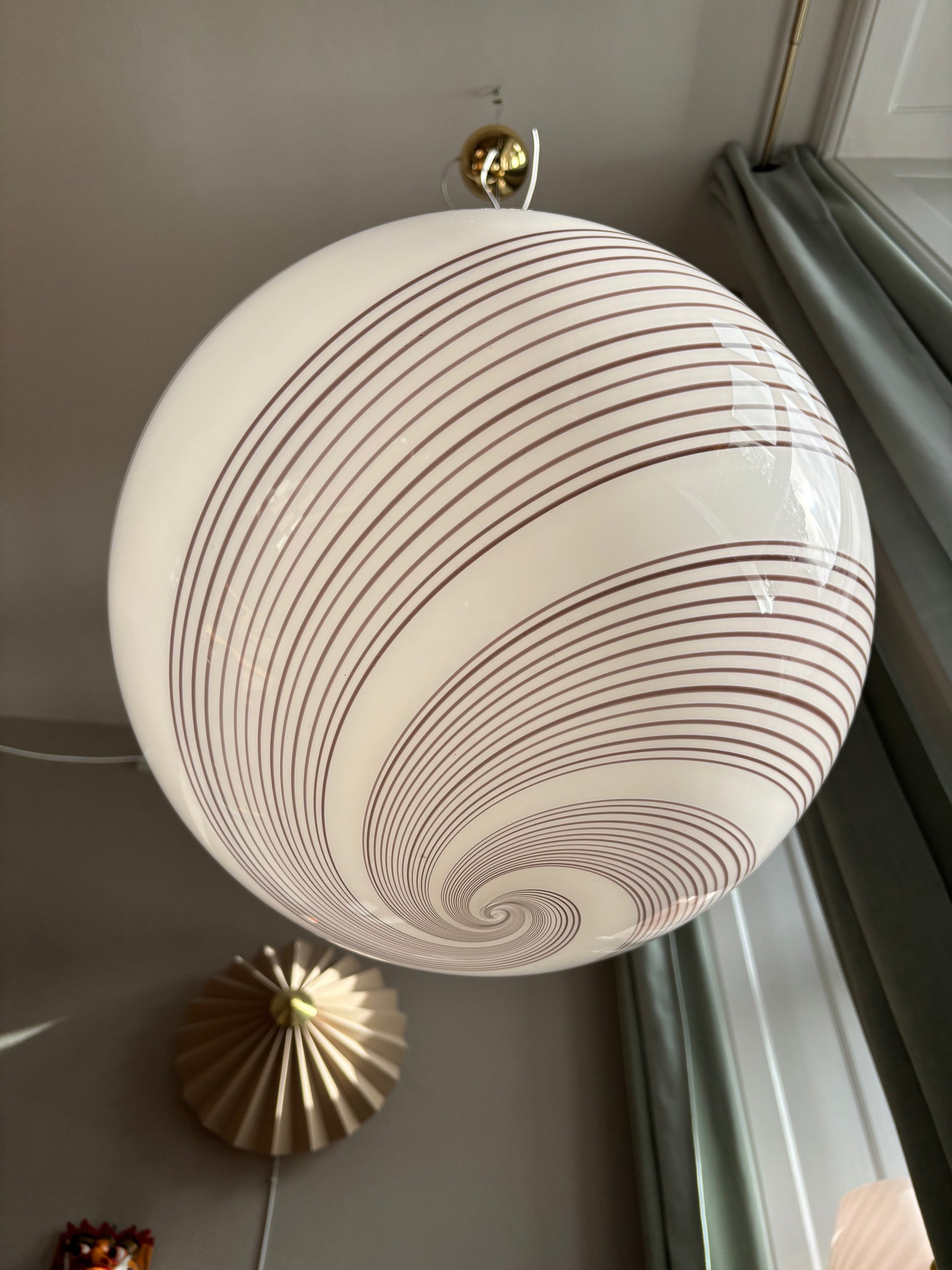 Vintage Murano pendel hvid med rødbrunt swirl 45 cm