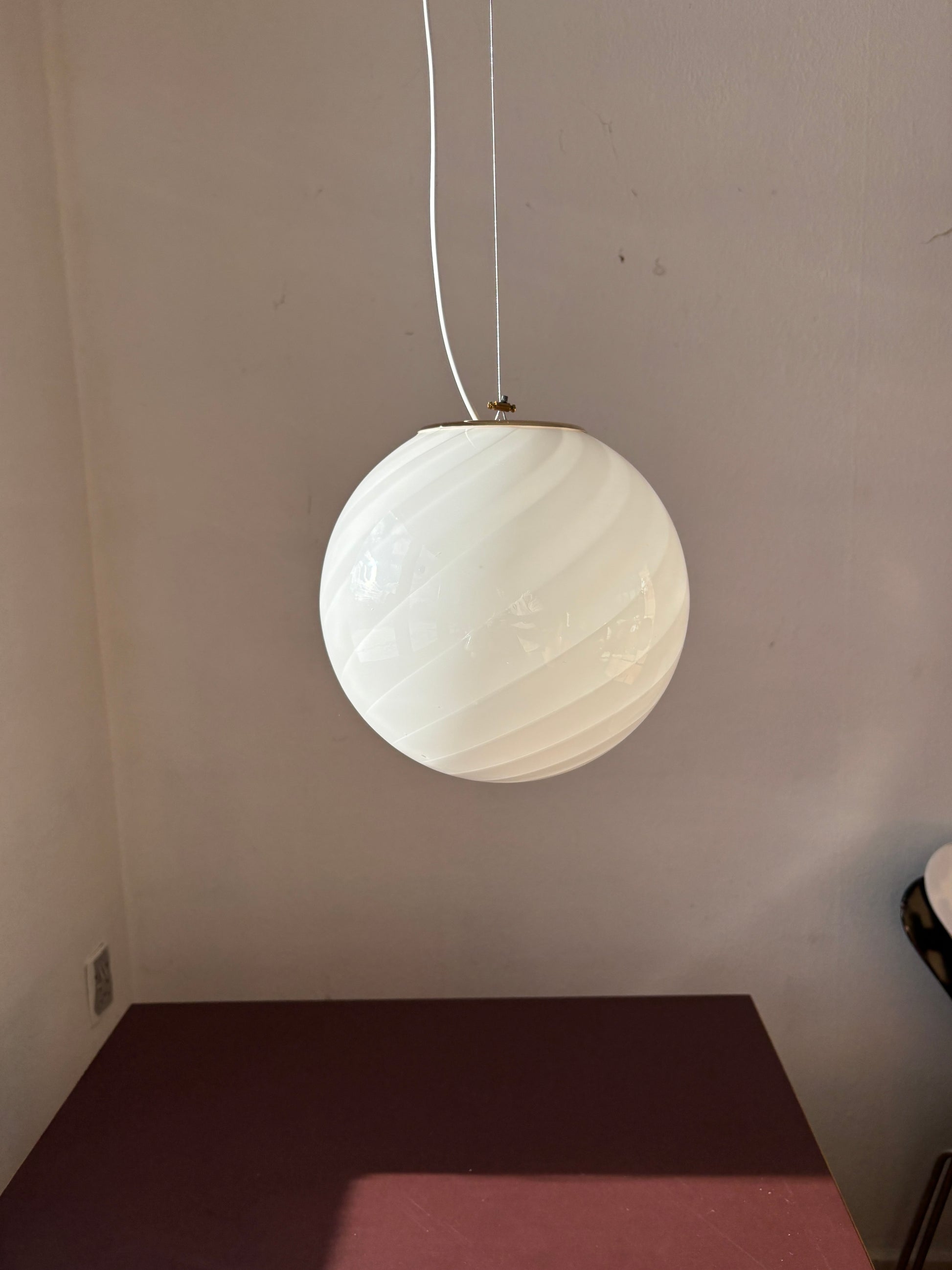 Vintage Murano pendel i hvidt swirl 25 cm