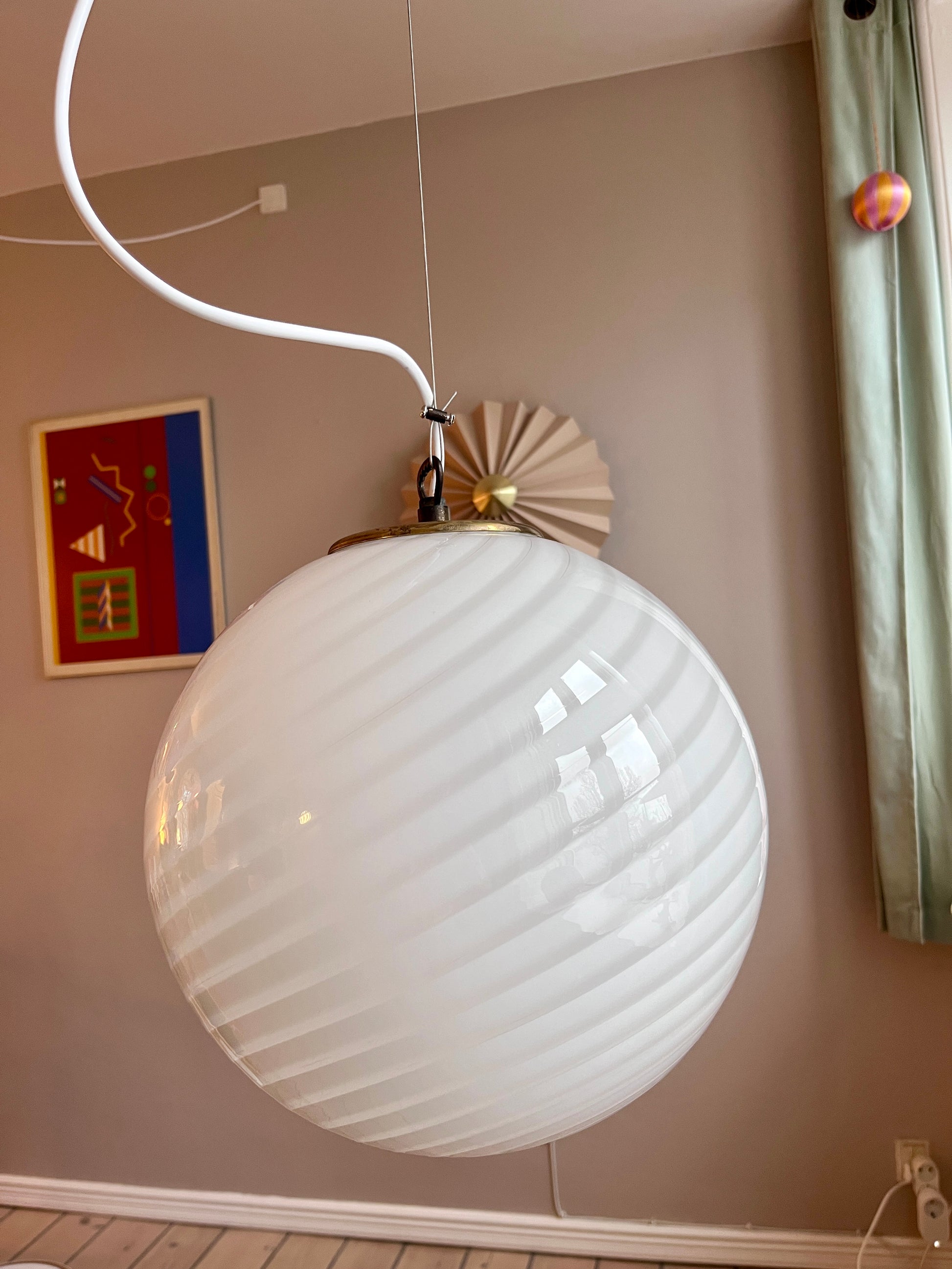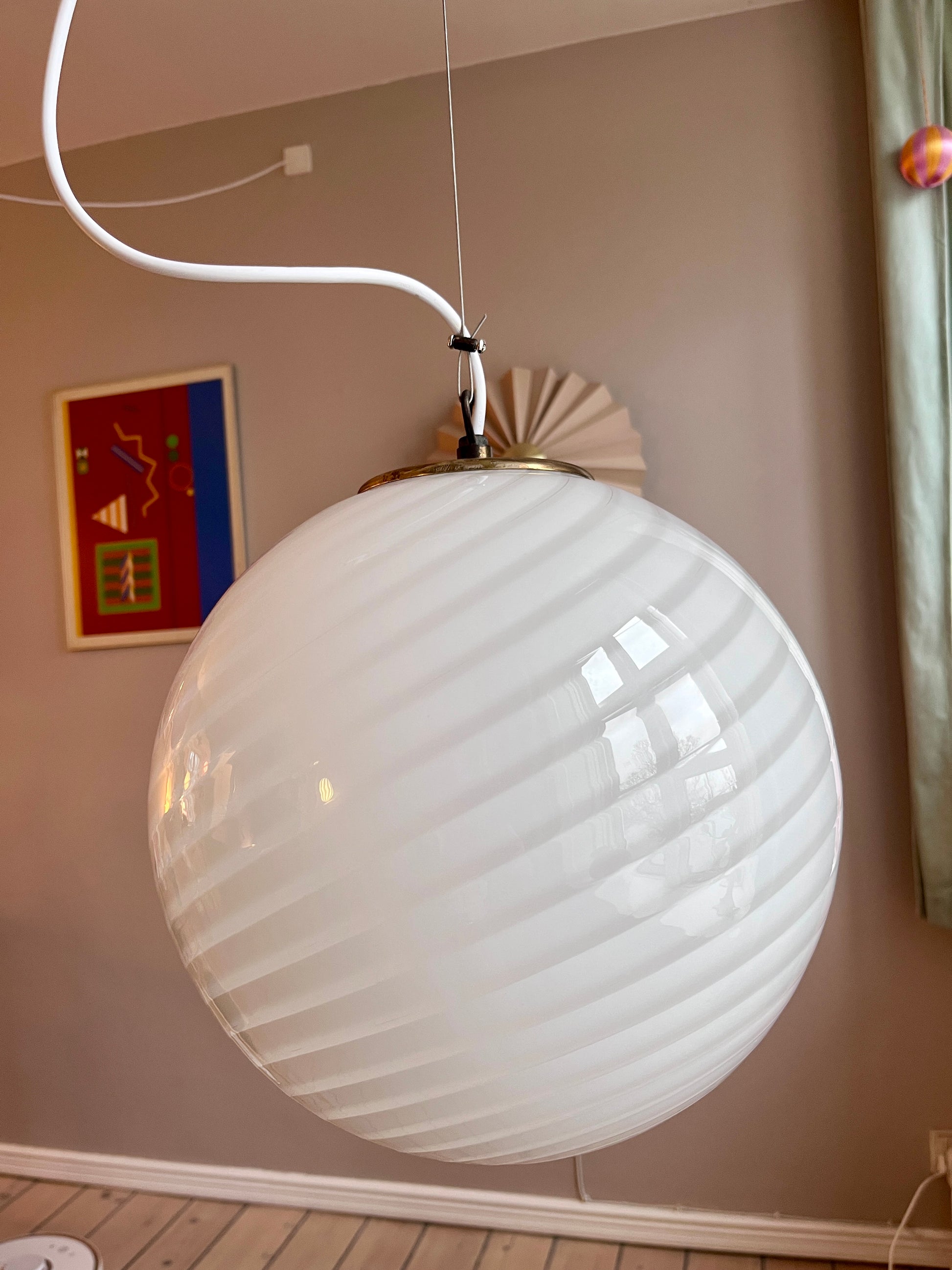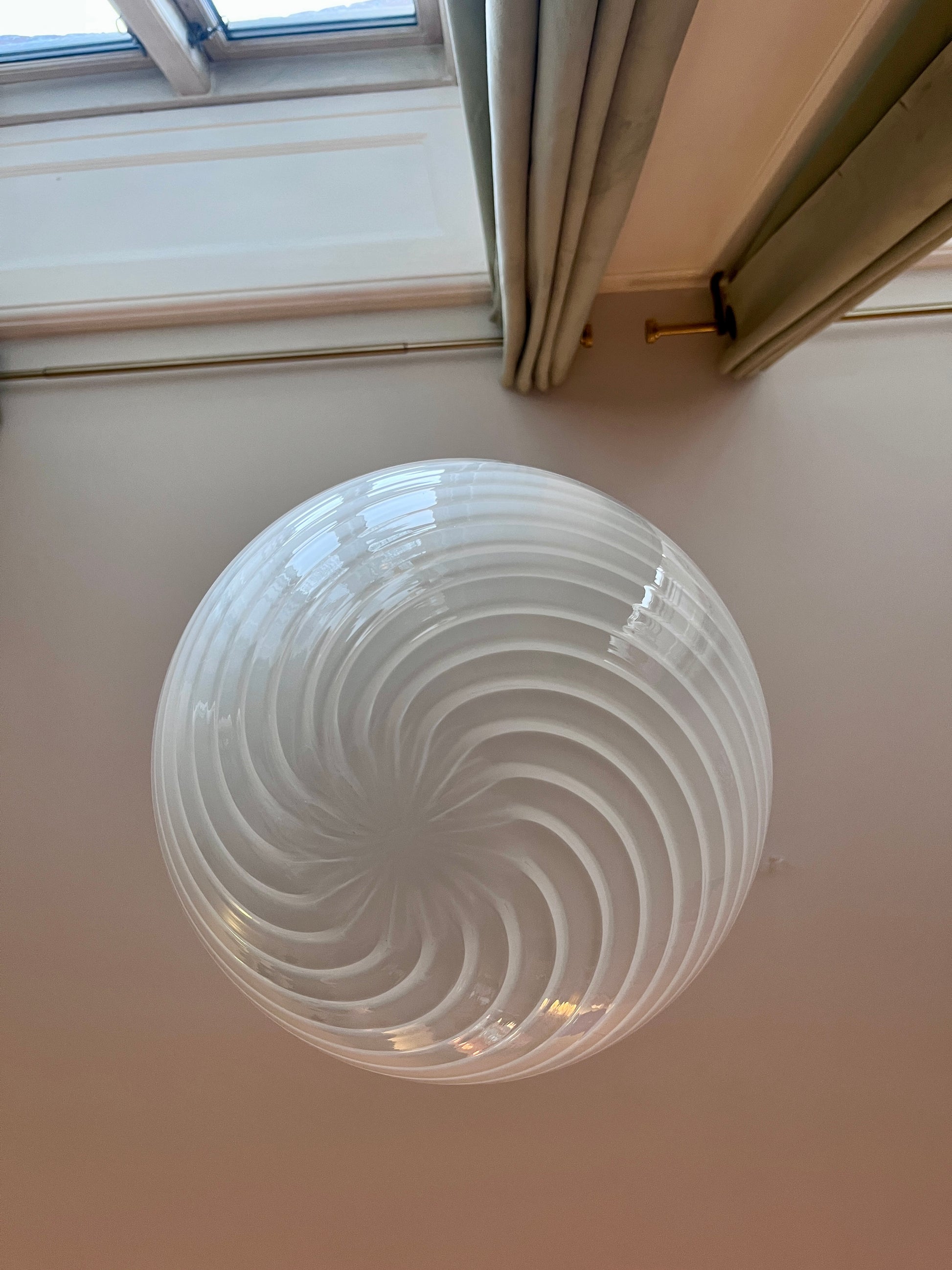 Vintage Murano pendel rund med hvidt swirl 30 cm