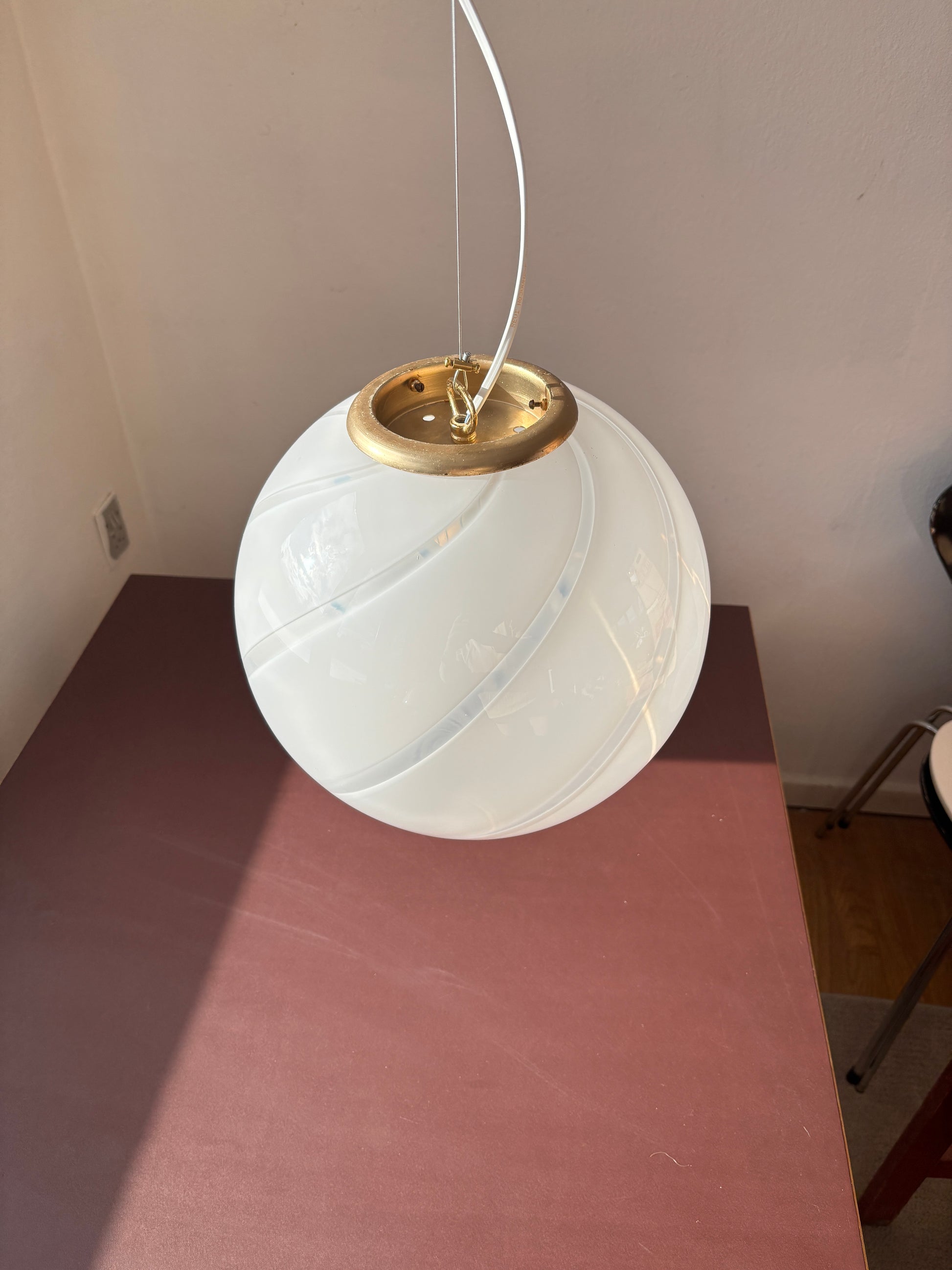 Vintage Murano pendel rund med hvidt swirl 30 cm