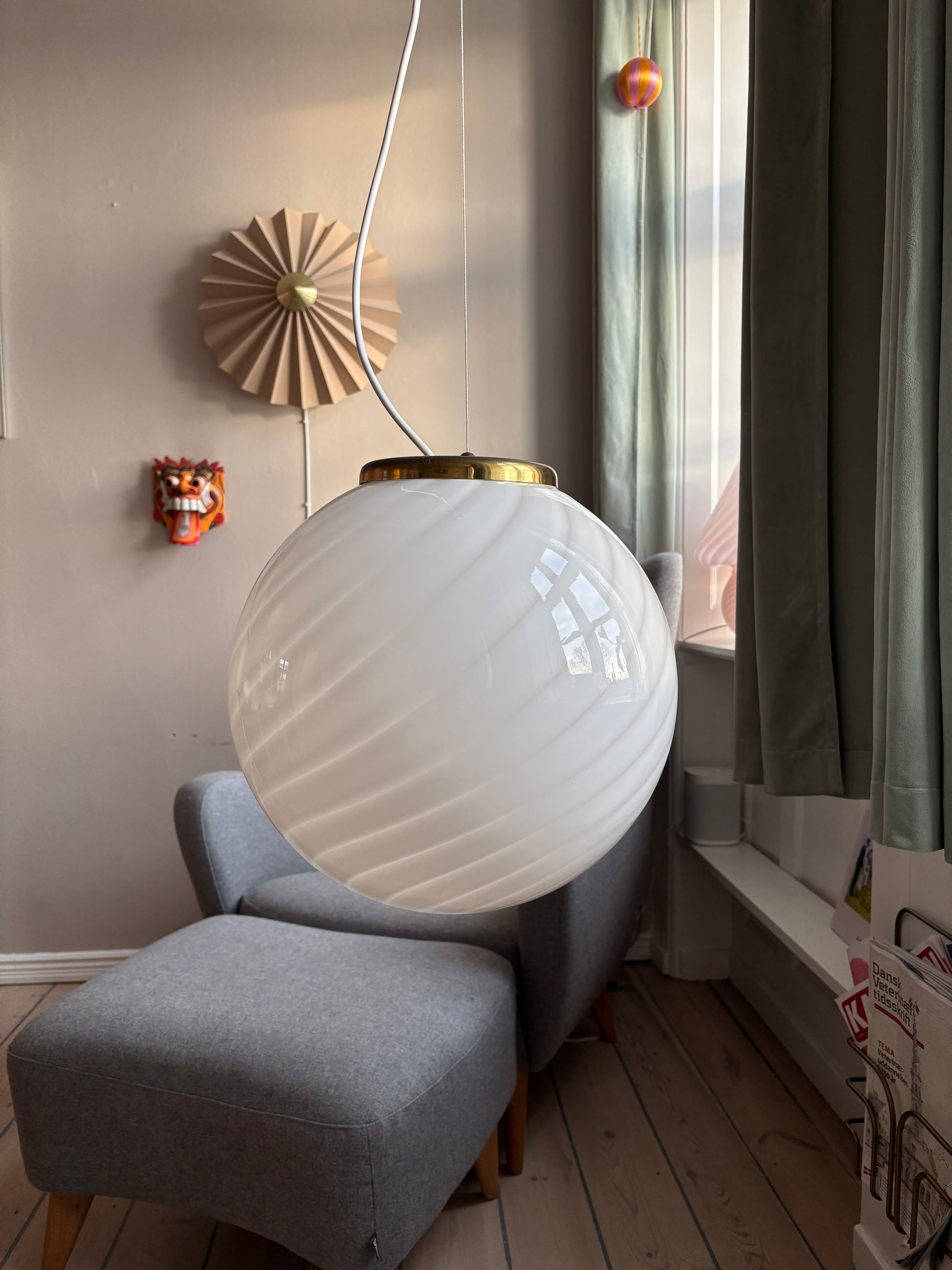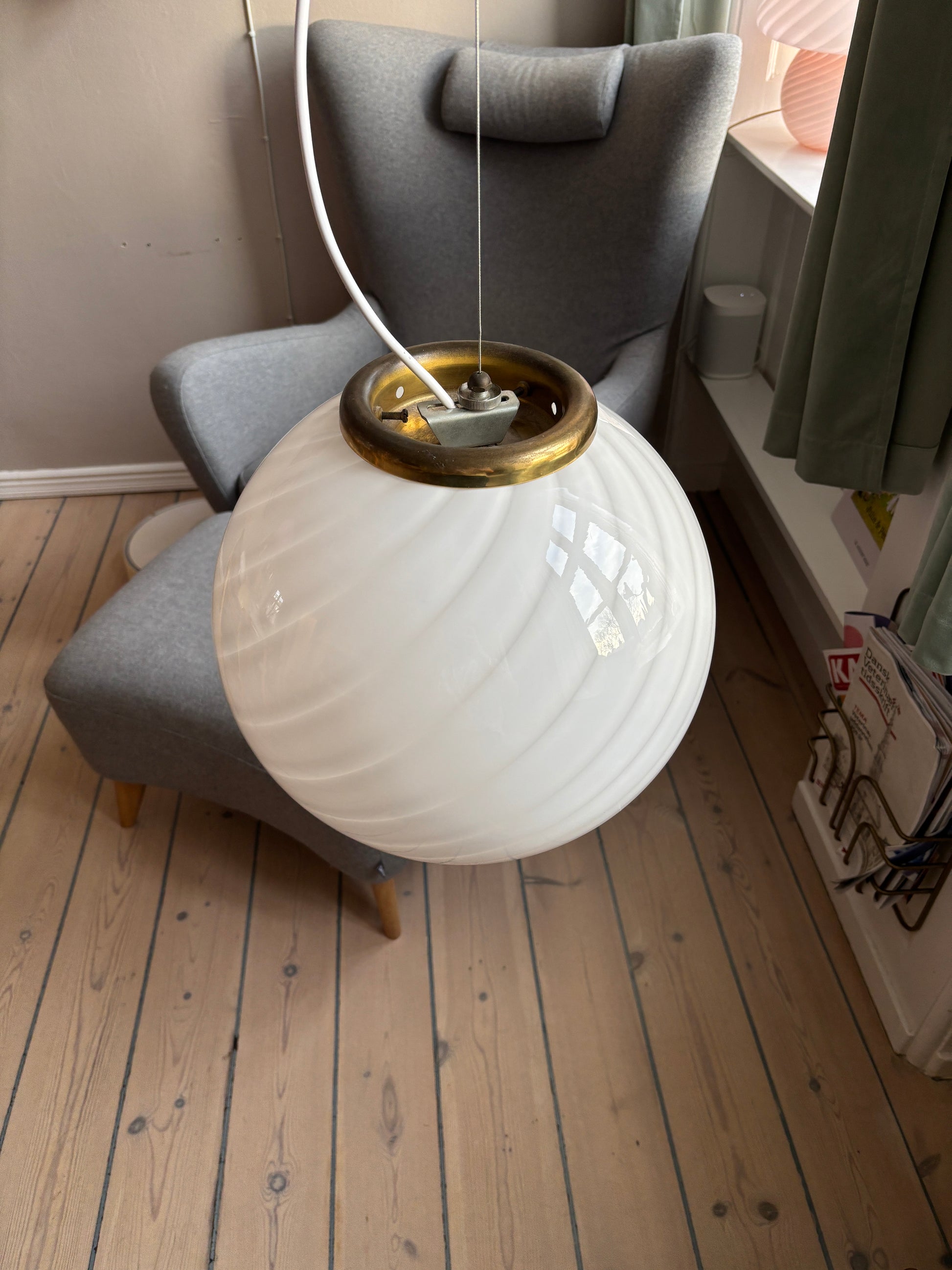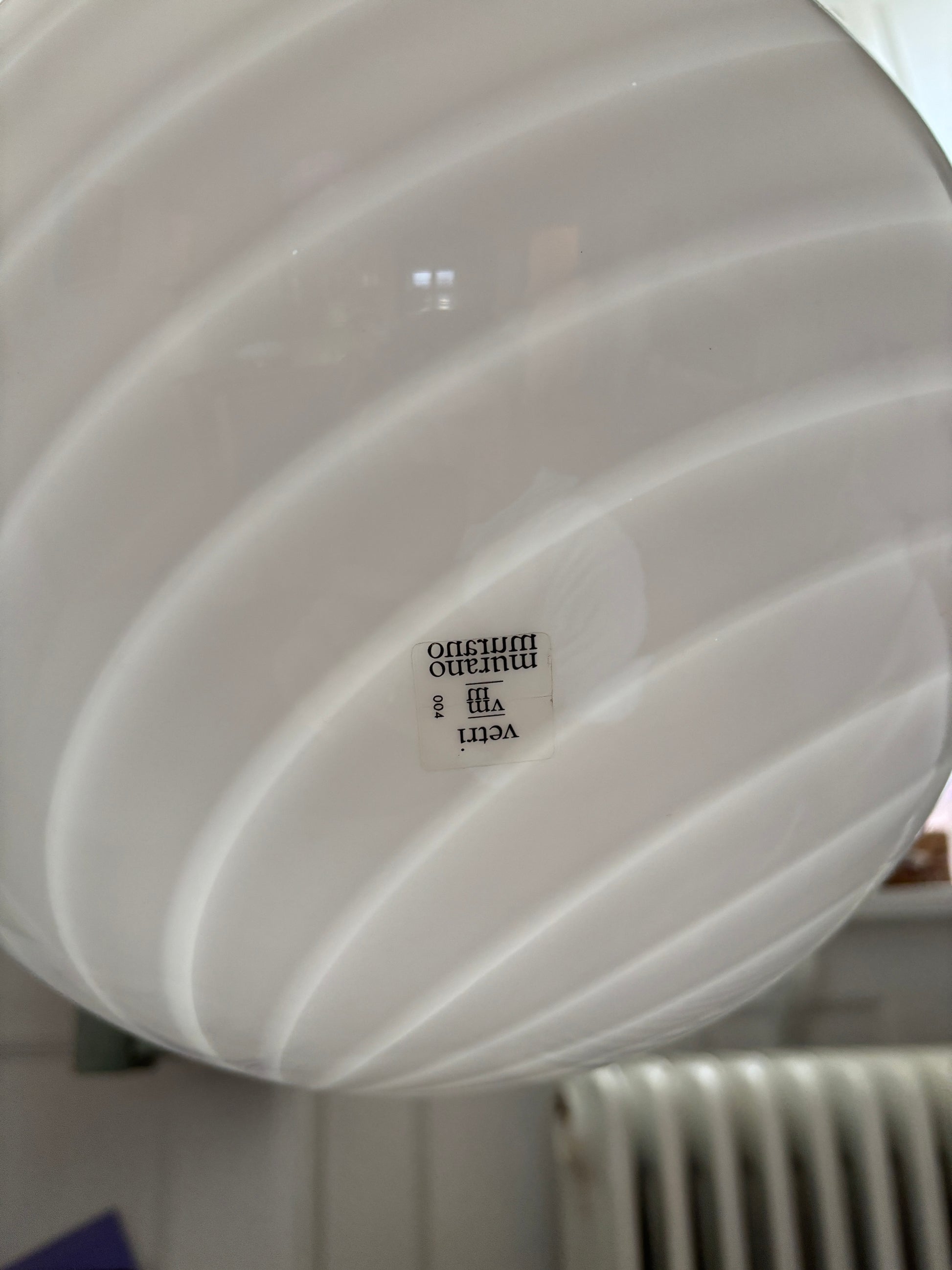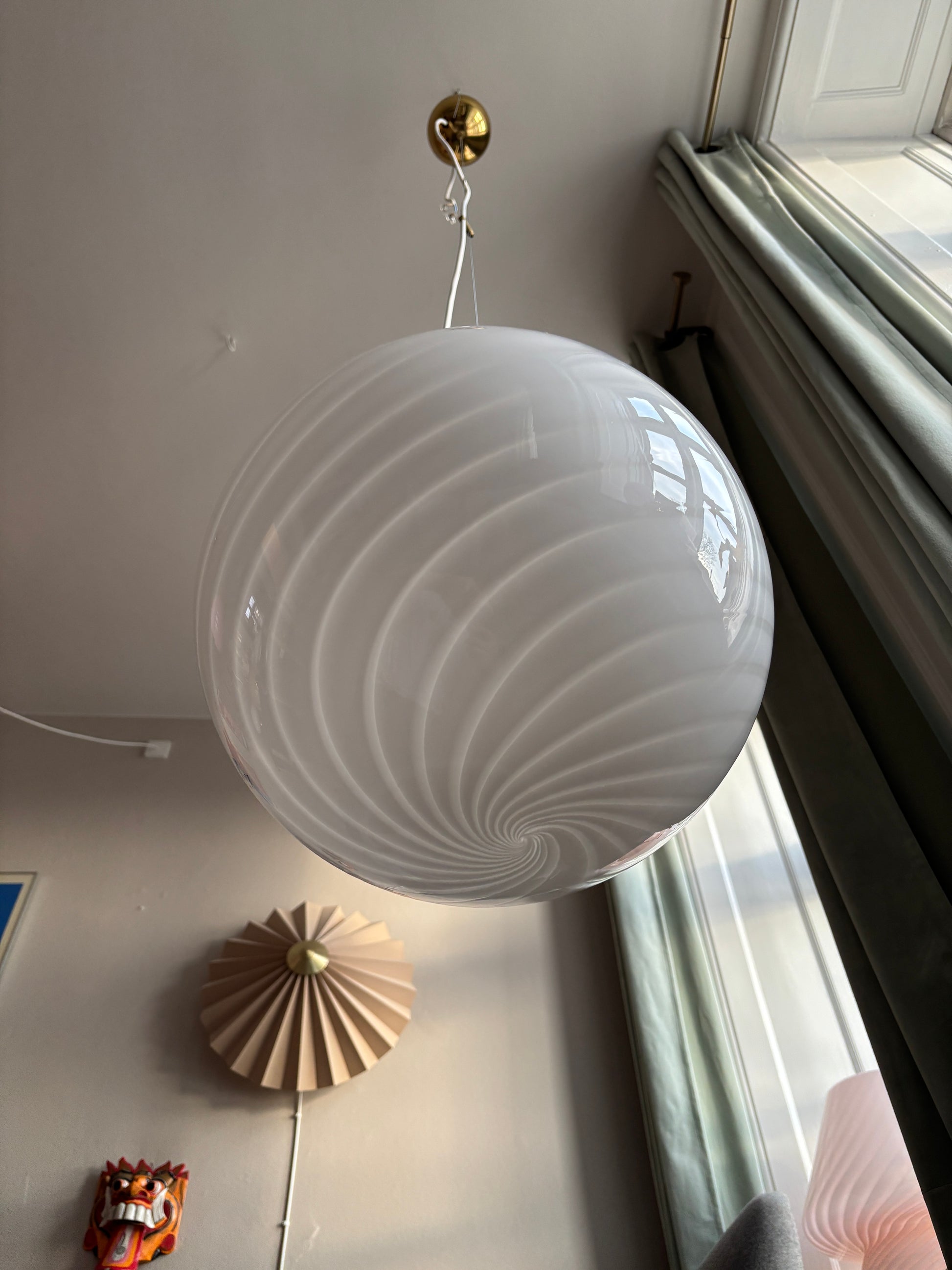 Vintage Murano pendel rund med hvidt swirl 35 cm Vetreria Lag S.R.L
