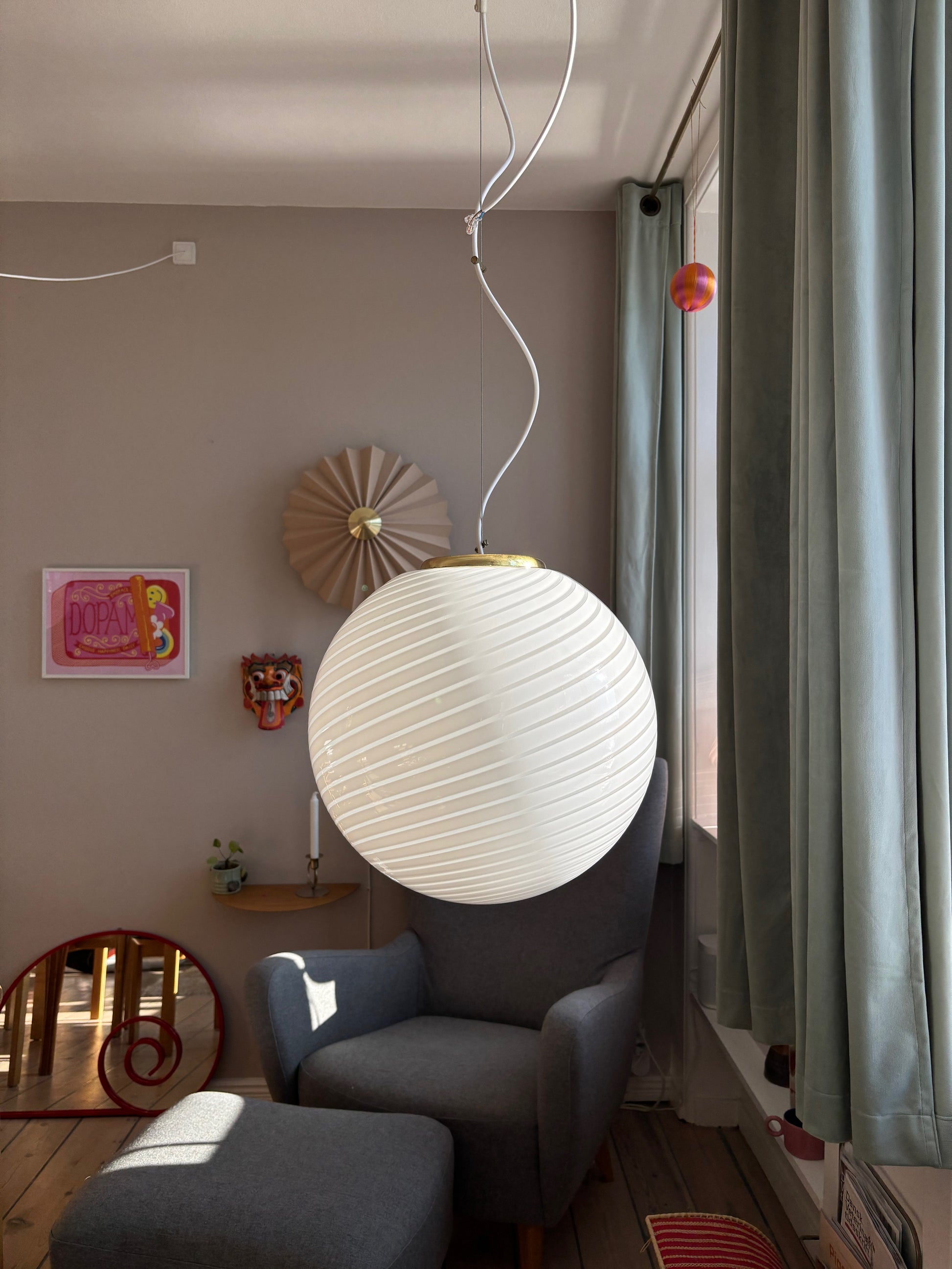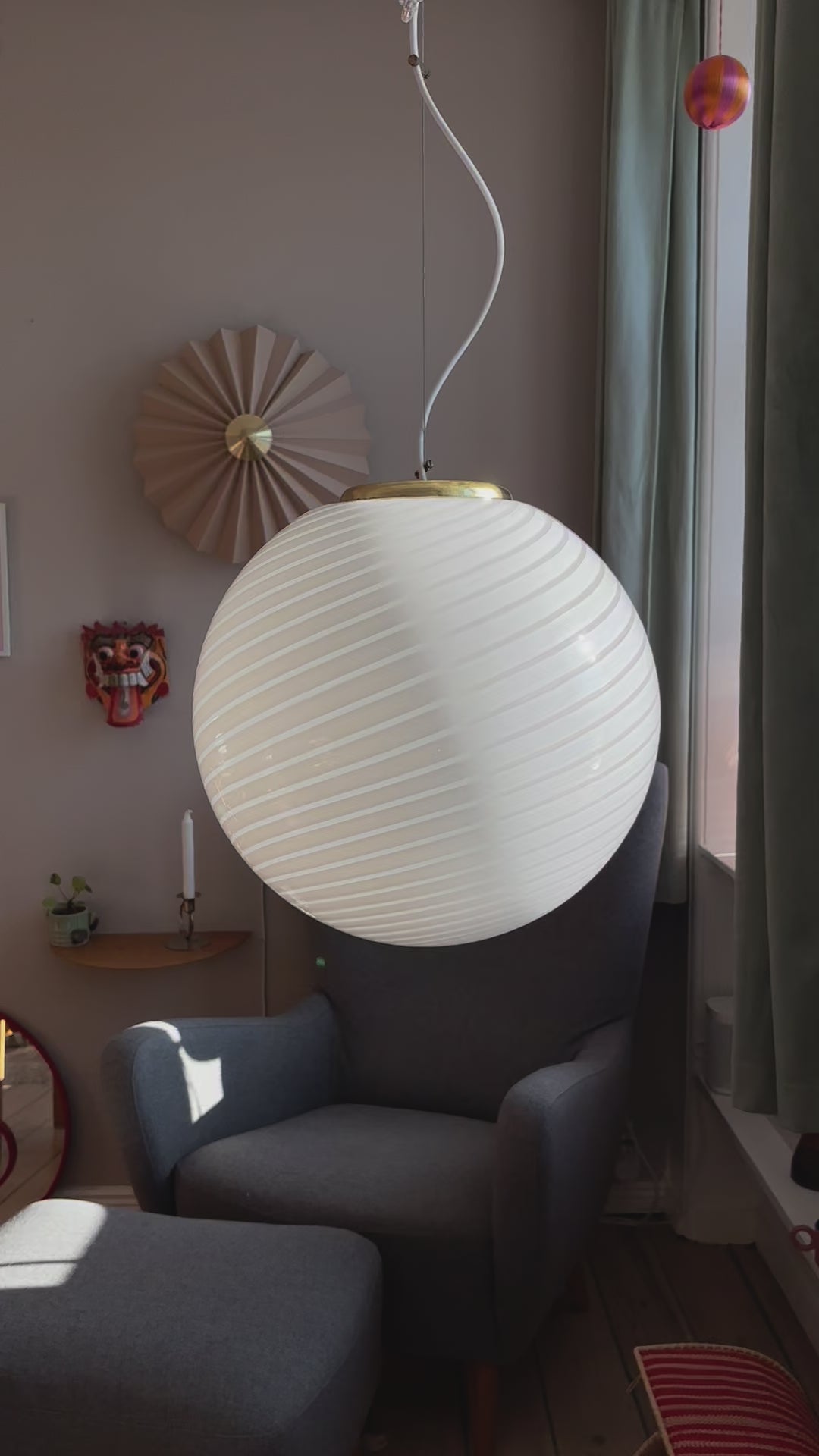 Vintage Murano pendel rund med hvidt swirl 40 cm