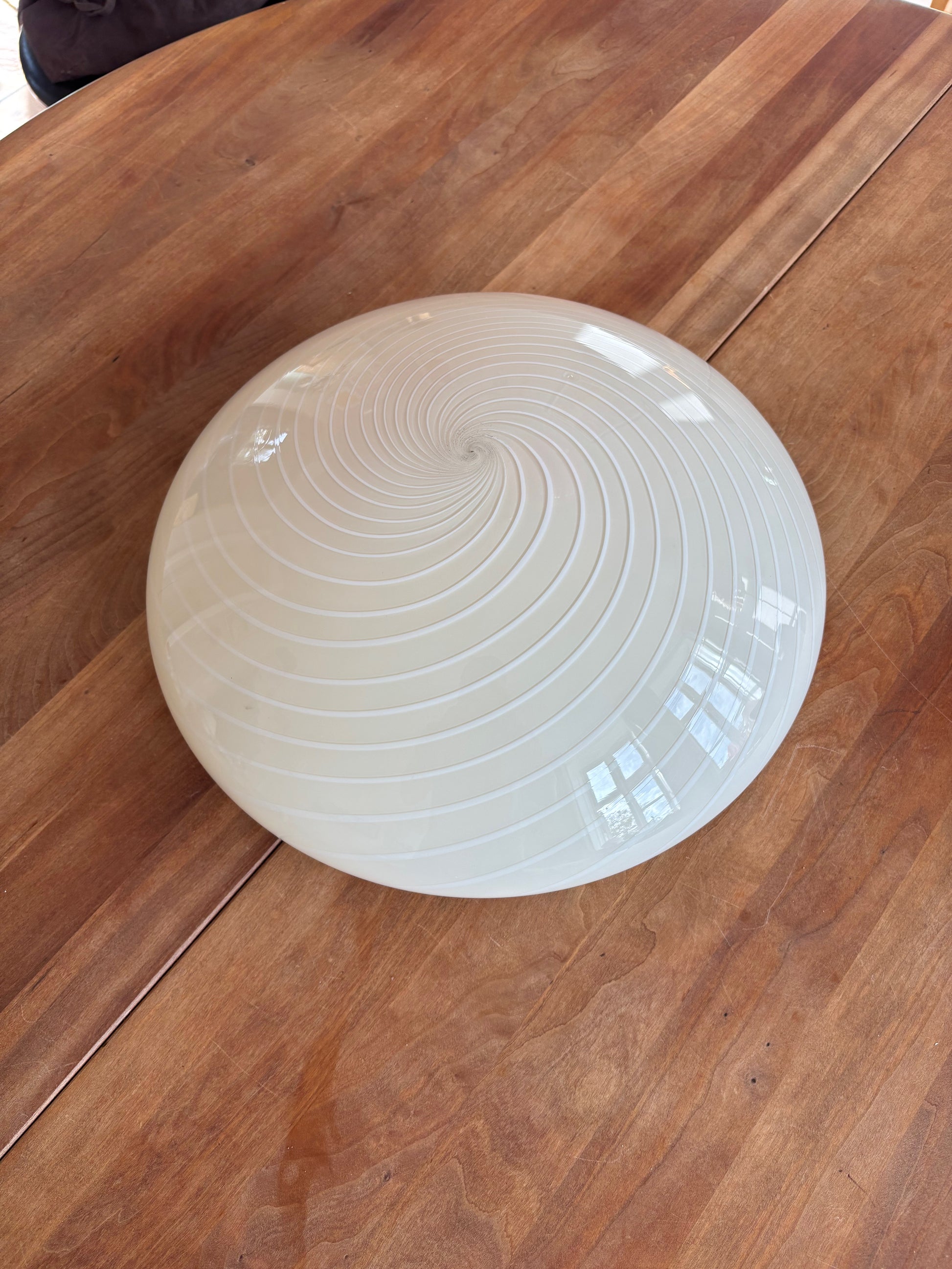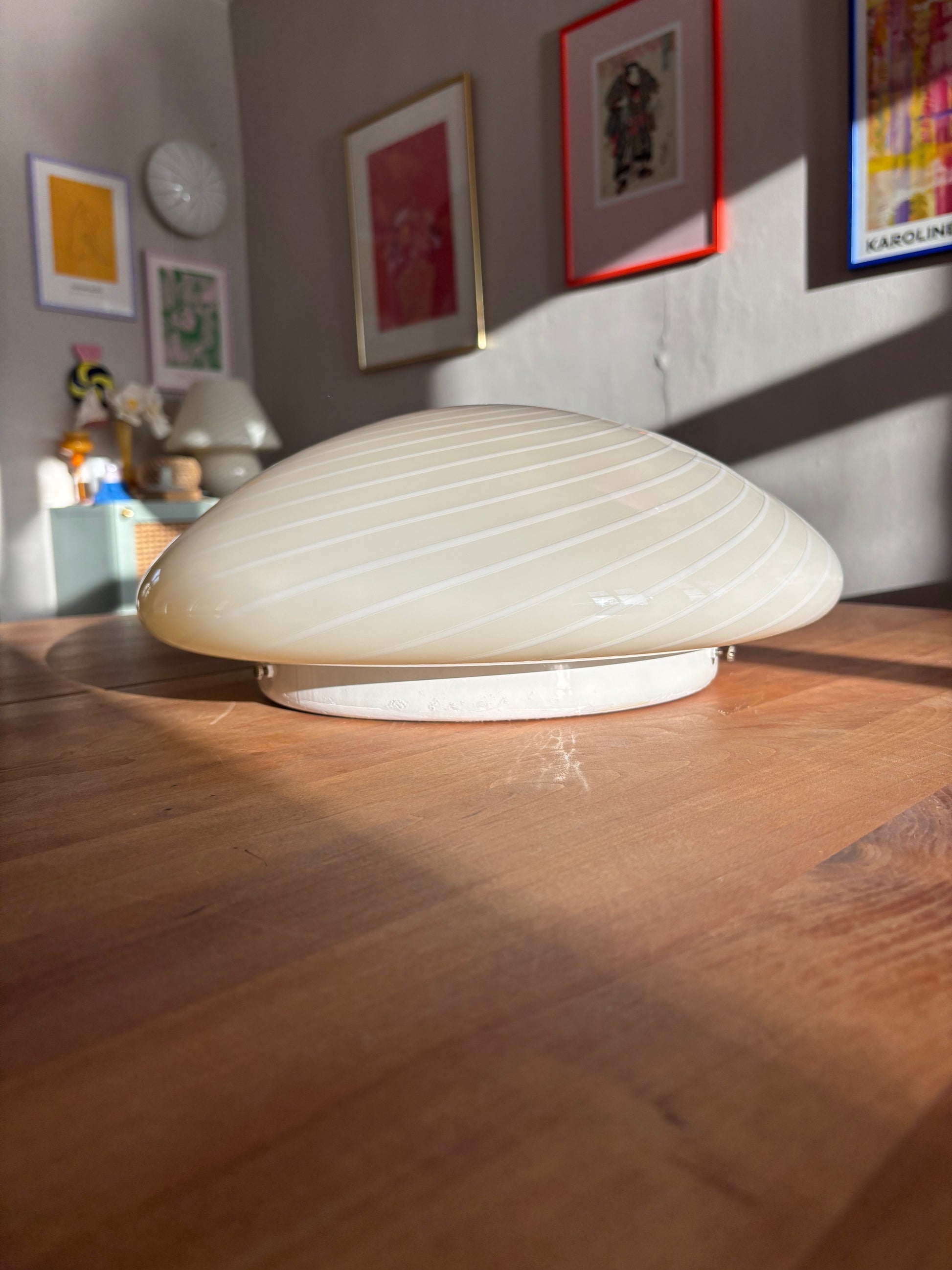 Sjælden vintage Murano plafond i cremegult glas med et smukt hvidt swirl mønster.
