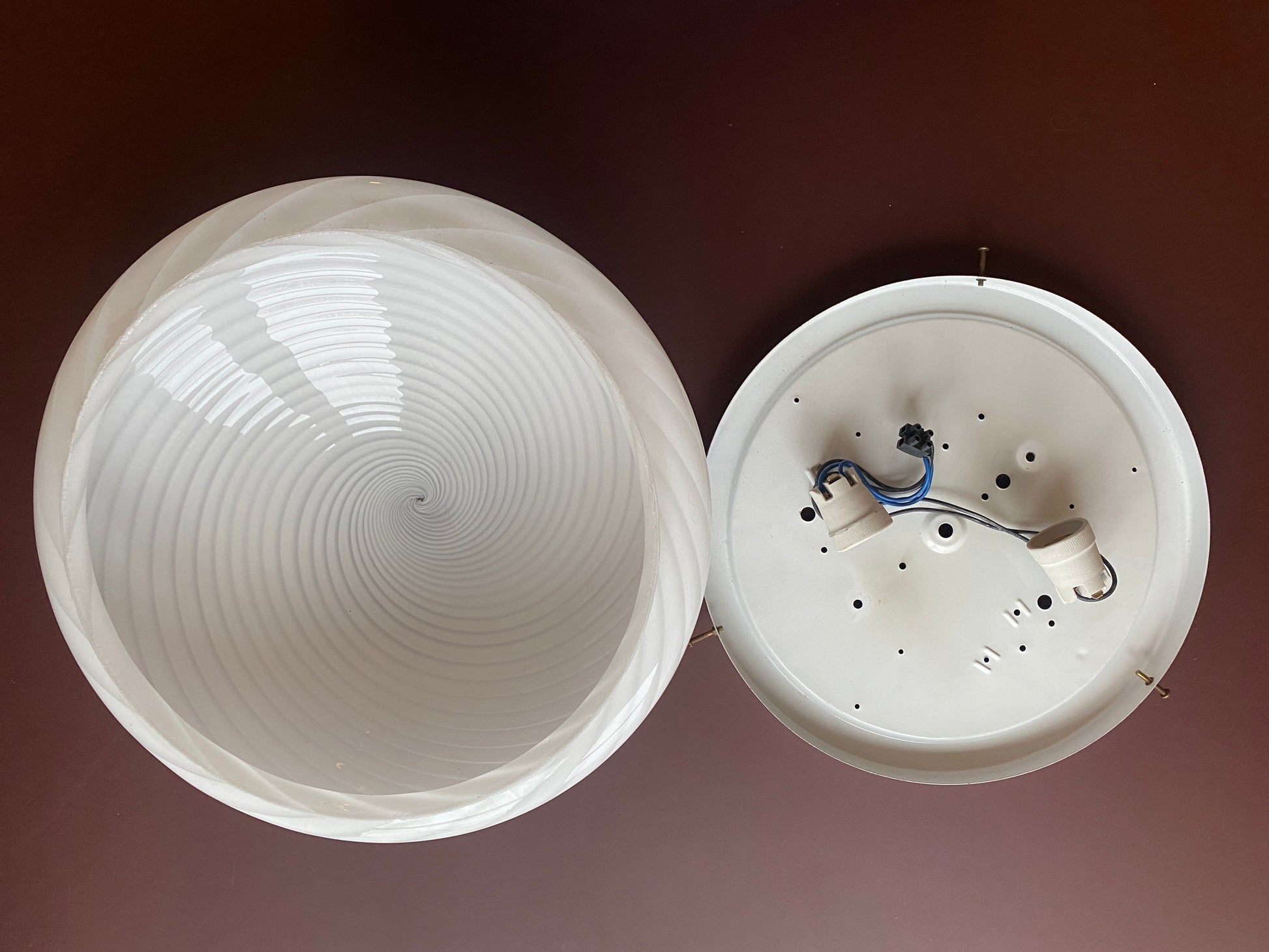 Kan både bruges som loftlampe eller som væglampe. Håndlavet i Italien, 1970erne og mundblæst i Murano glas.