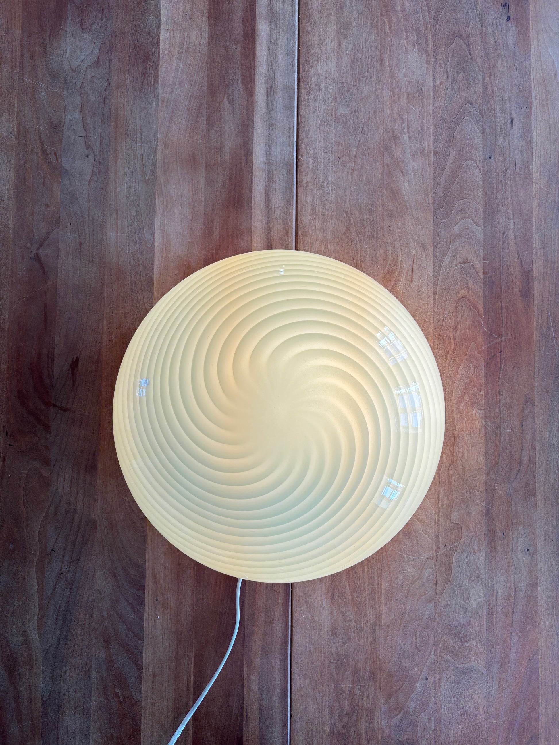 Kan både bruges som loftlampe eller som væglampe. Håndlavet i Italien, 1970erne og mundblæst i Murano glas.