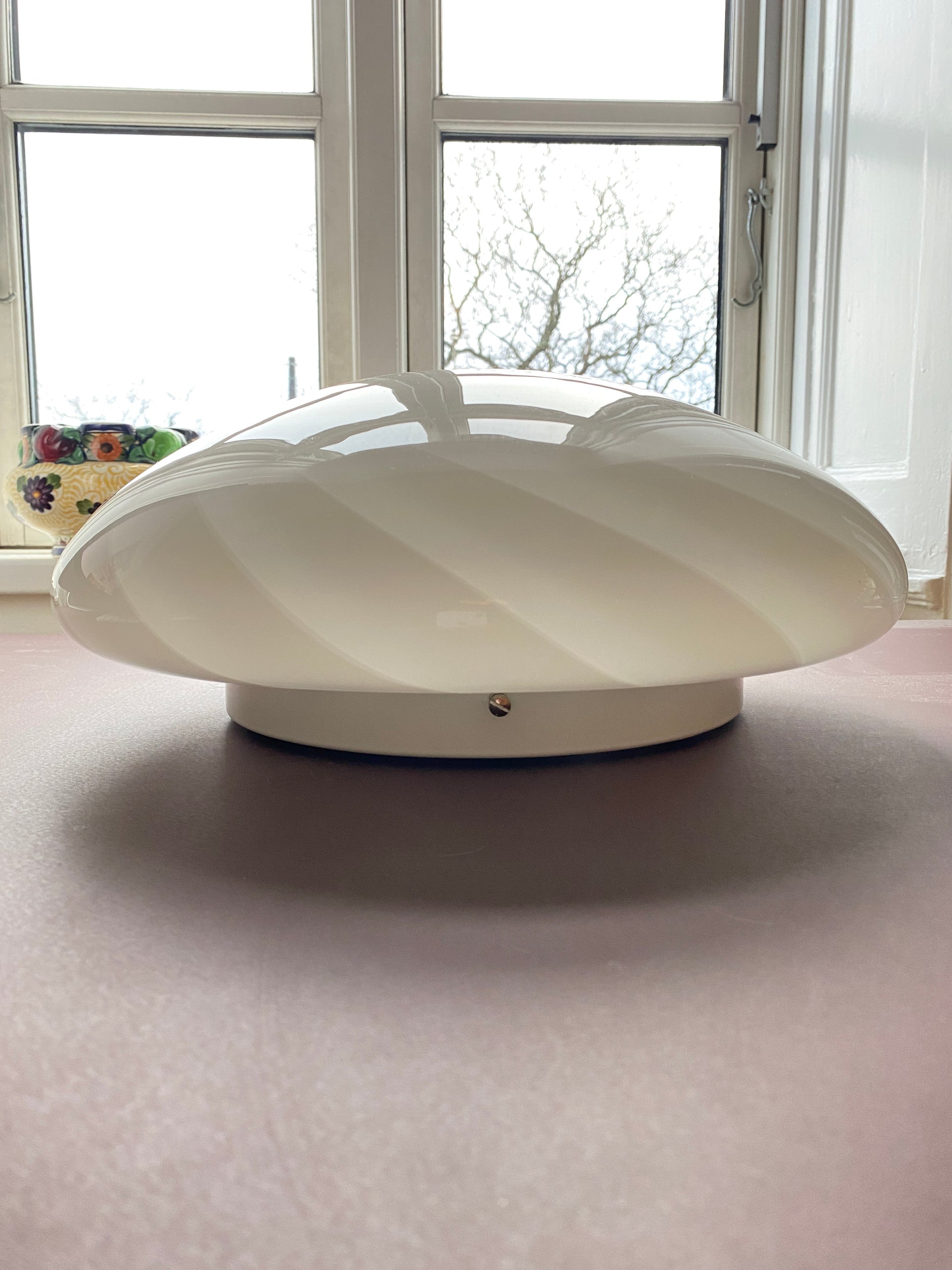 Vintage Murano plafond i hvid med swirl 38 cm