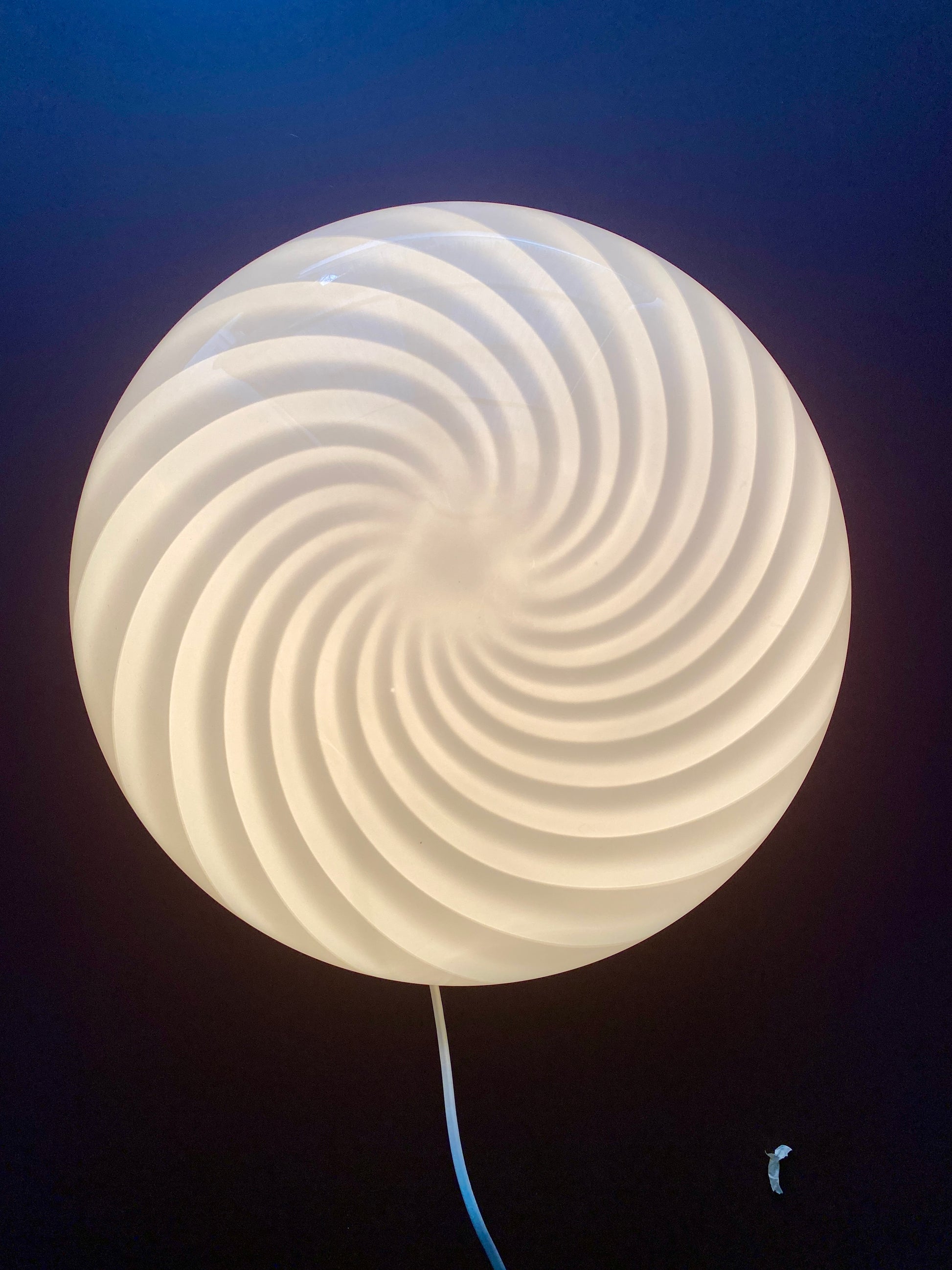 Vintage Murano plafond lampe i glas med hvid swirl mønster. Kan både bruges som loftlampe eller som væglampe. Håndlavet i Italien, 1970erne og mundblæst i Murano glas.