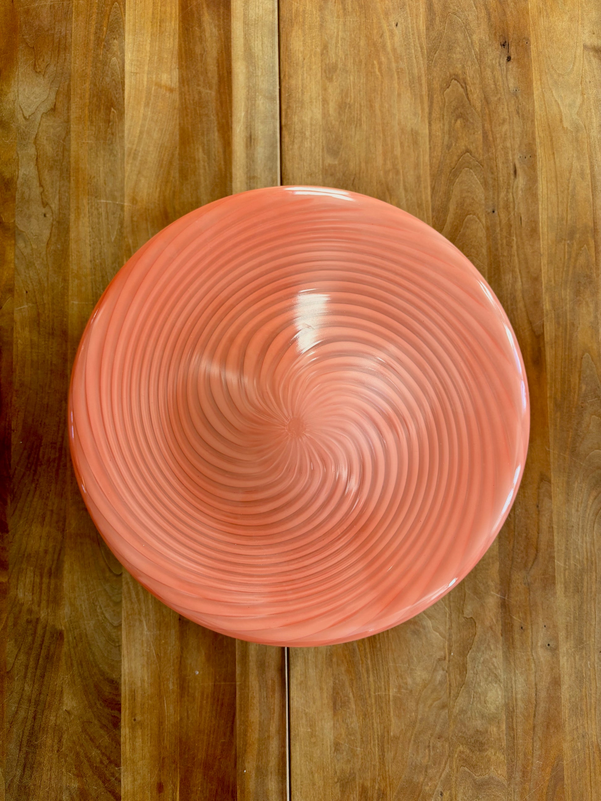 En meget sjælden og smuk vintage pink swirl plafond på 43 cm med messing ophæng.