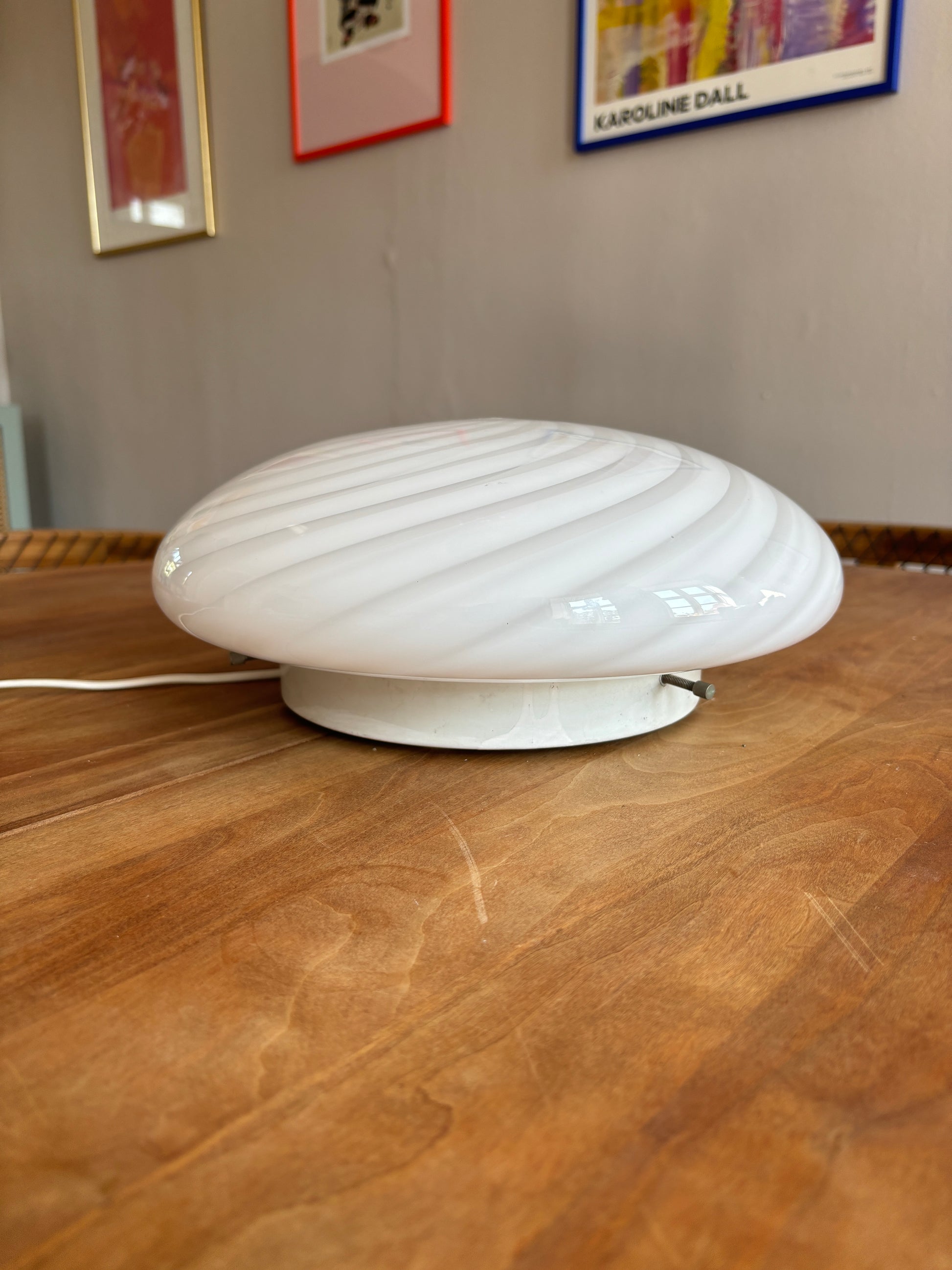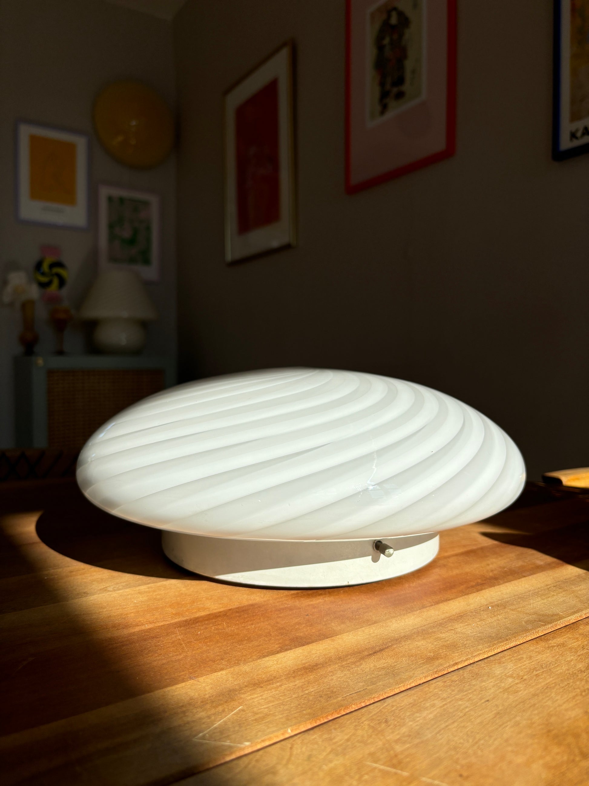 Vintage Murano plafond lampe i glas med hvid swirl mønster. Kan både bruges som loftlampe eller som væglampe. Håndlavet i Italien, 1970erne og mundblæst i Murano glas.