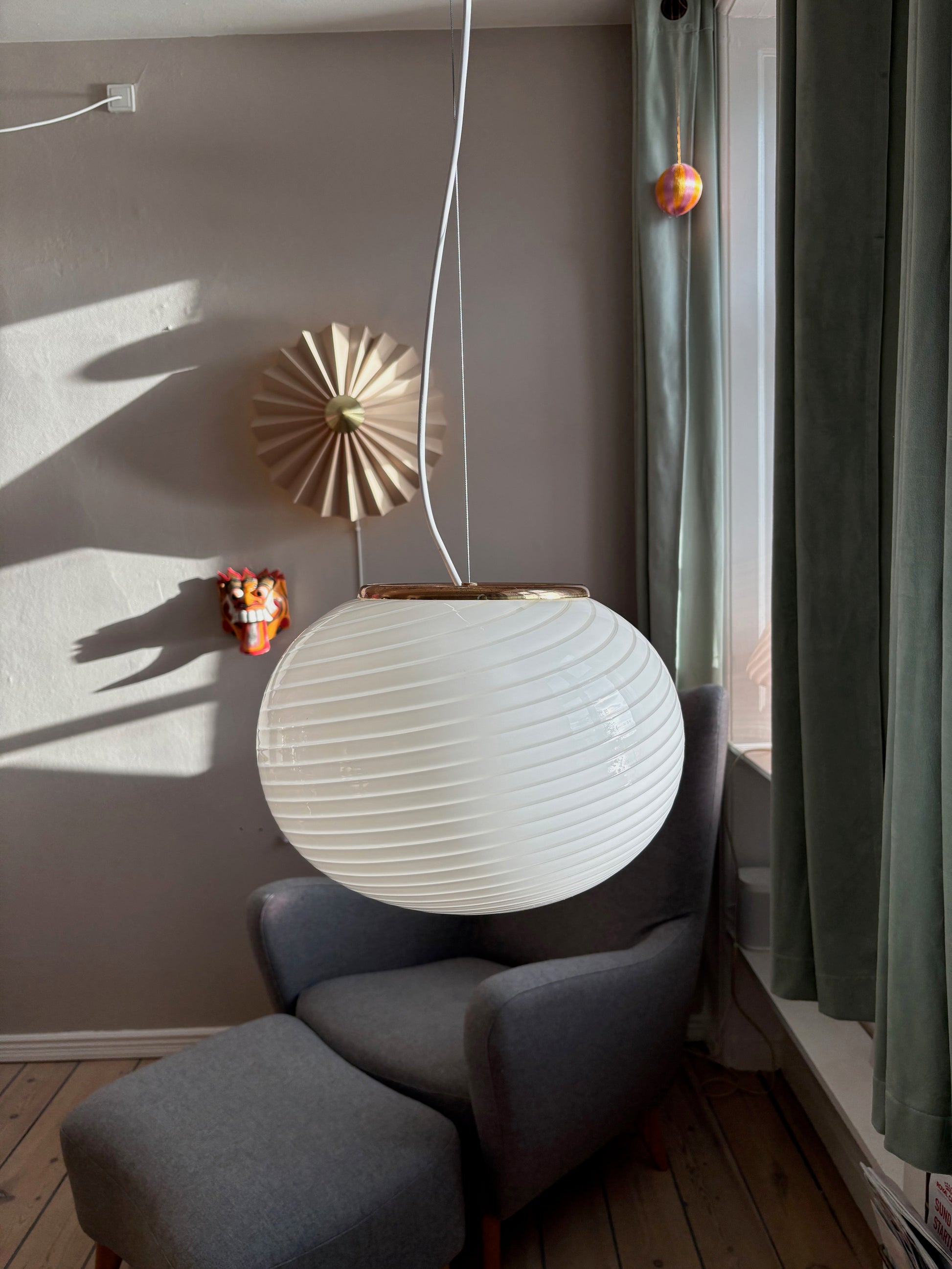 Mundblæst i 1970'erne og giver et skønt lys, når den er tændt.