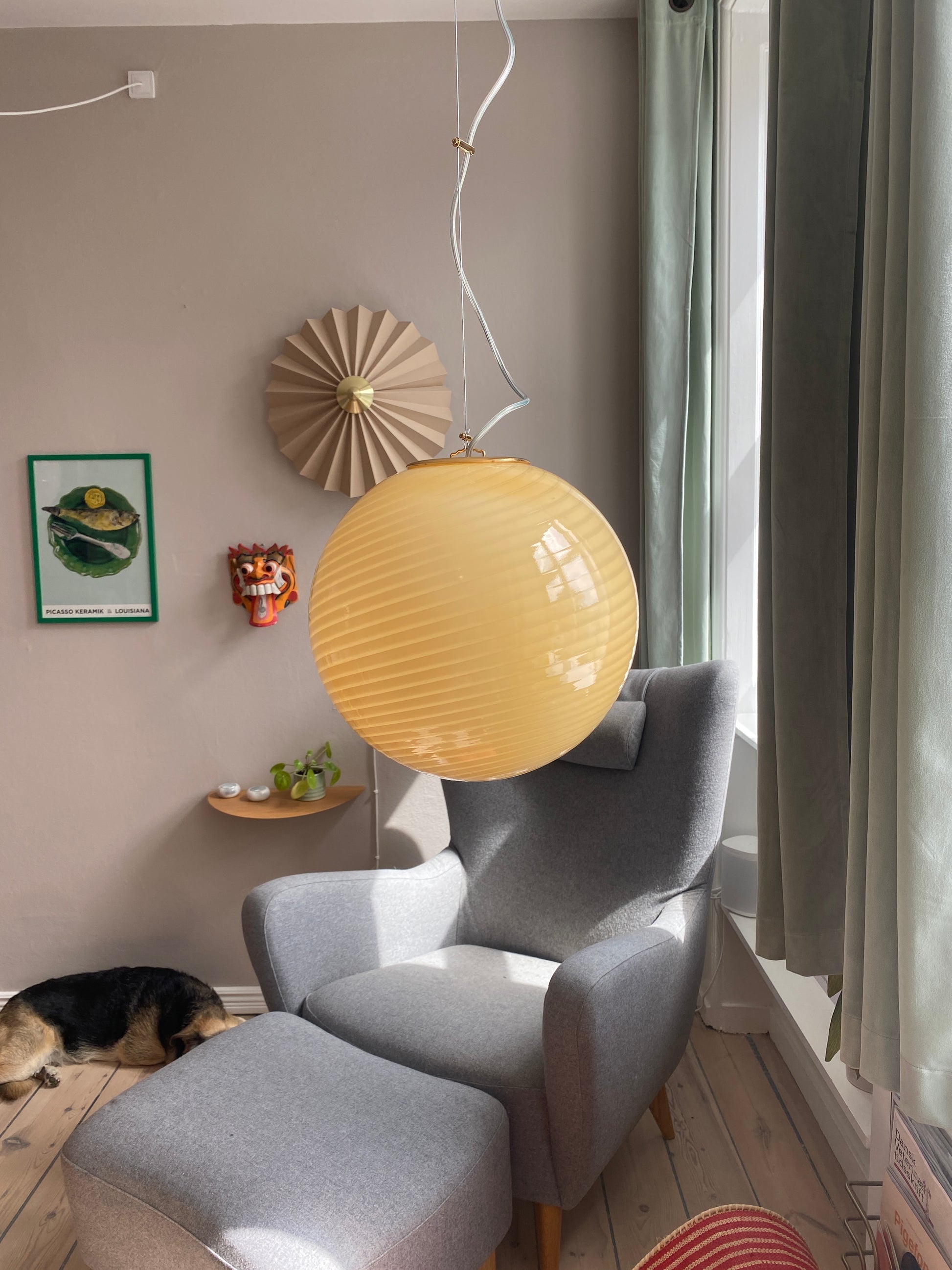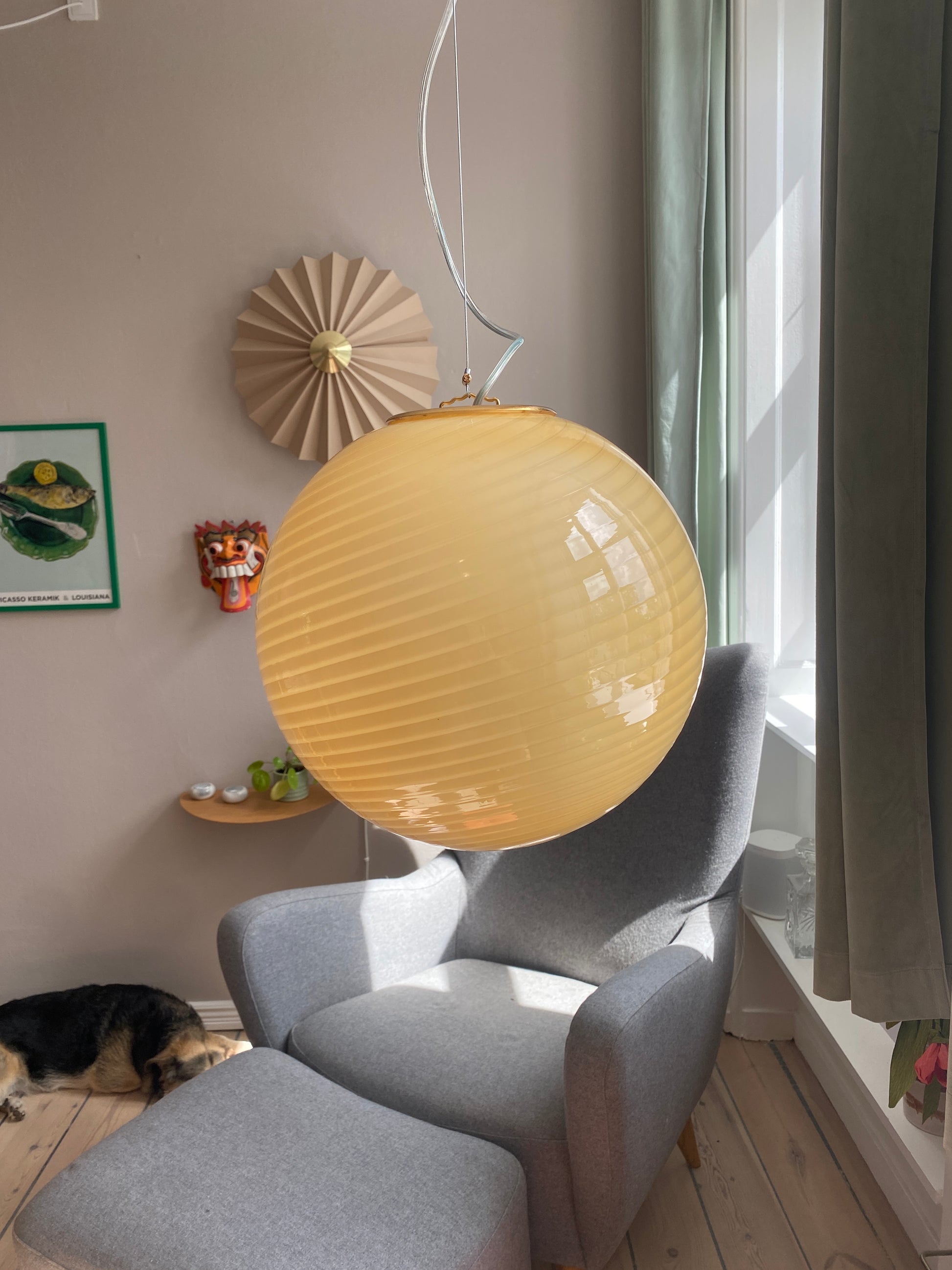 Lampen er håndlavet i 70'erne og der kan være unikke forskelle eller variationer i glasset.